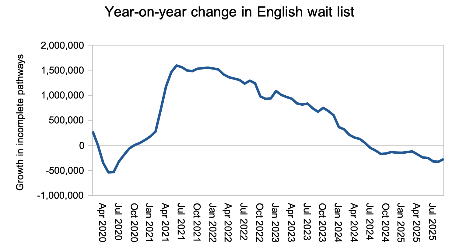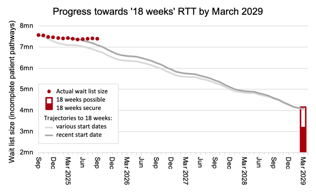 It is good that the rapid waiting list growth seen during the pandemic has come to an end. But the waiting list now needs to shrink decisively every single month, for the 18 weeks standard to be restored in 2029. Instead, it is roughly flatlining.