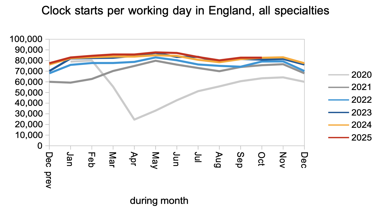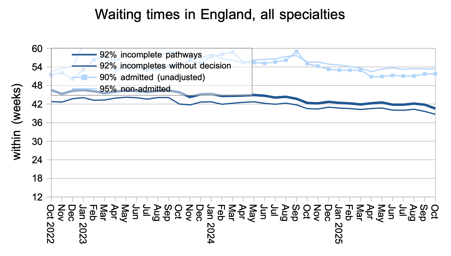 Referral-to-treatment data up to the end of November is due out at 9:30am on Thursday 15th January 2026, a week later than usual because of the holidays.